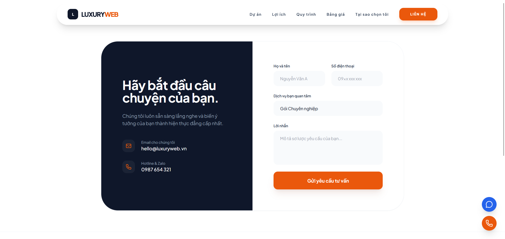 Nâng tầm thương hiệu với Luxury Studio – mẫu template hội tụ đỉnh cao của sự sang trọng và tinh tế. Với giao diện Dark Mode huyền bí kết hợp cùng hiệu ứng chuyển động mượt mà, website của bạn sẽ biến thành một không gian nghệ thuật thực thụ, nơi mọi dự án Portfolio đều được tôn vinh một cách đẳng cấp nhất. Không chỉ sở hữu tốc độ tải trang thần tốc và khả năng hiển thị hoàn hảo trên mọi thiết bị, Luxury Studio còn là "vũ khí" sắc bén giúp bạn khẳng định vị thế chuyên gia và chinh phục những khách hàng khó tính nhất ngay từ cái nhìn đầu tiên.